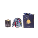 Herringbone Candle With Scarf Eau De Vie - Navy & Dragonfly Lid