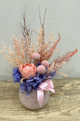 A stunning fusion of nature's beauty and enduring elegance. Crafted with care by our expert florists, this exquisite arrangement features a captivating assortment of dried and preserved blooms in a vibrant spectrum of hues.